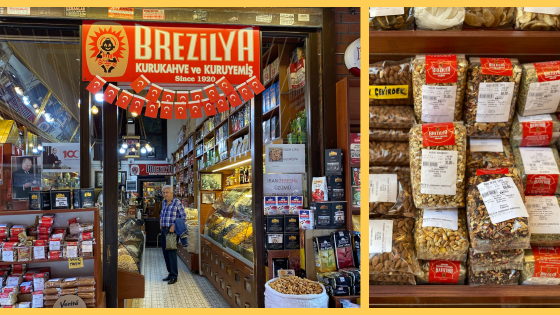 Brezilya kurukahveci ve kuruyemişçi – ahová minden egyes alkalommal ellátogatok, ha arrafelé visz az utam. Frissen őrölt kávé, mandula, mogyoró, kevert magvak, napon szárított sárgabarack, datolya, barátnőm kedvence a szárított eper (eperfáról), szálas teák és még sok-sok finomság, amit itt fel sem lehet sorolni.