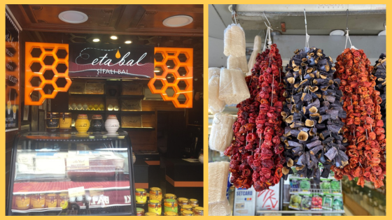 A másik kedvenc kis üzletem a mézárus – Eta bal, ahol nem csak lépes és szűrt mézet lehet vásárolni, hanem poharakba kimérve árulnak tejszínt (kaymak) mézzel meglocsolva. Maga a csoda, ajánlom kipróbálásra.